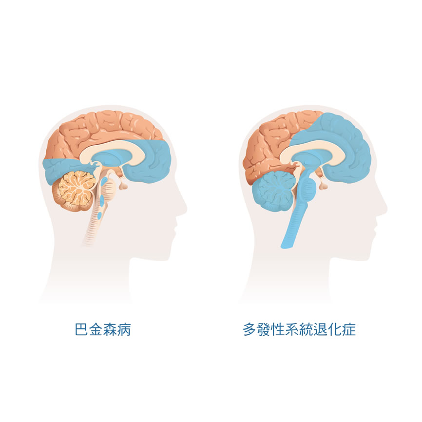 巴金森病患的路易氏體主要是沉積在腦幹,多發性系統退化症病患的路易氏體沉積部位更廣。