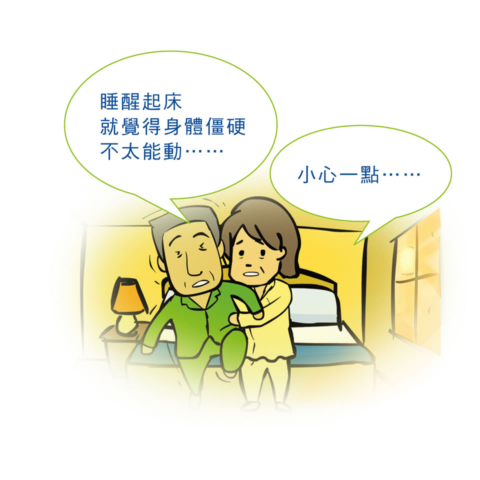 8 早晨起床時肌肉僵硬、動作遲緩。