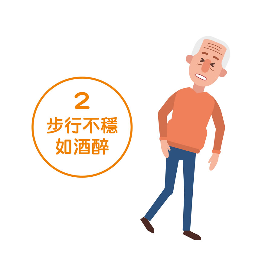 多重性系統退化症會出現各種自律神經系統的症狀,包括:頸部肌肉張力不正常、步行不穩像喝醉酒、排尿有困難,以及起身時出現暈眩、低血壓。